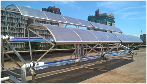 图1. 热工所开发的工业化菲涅尔透射聚光太阳能高温集热系统,具有抗环境