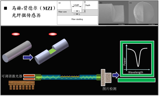 提出、设计并利用激光微纳制造新方法及其替代方法加工了多种新型光纤微传感器。与当前商品化的光纤光栅相比较,灵敏度提高了100-1000 倍,工作极限温度从350℃提高到了1200℃,克服了各物理量之间的交叉敏感问题,成功解决了多个国防领域重大装备关键物理量的测量问题。