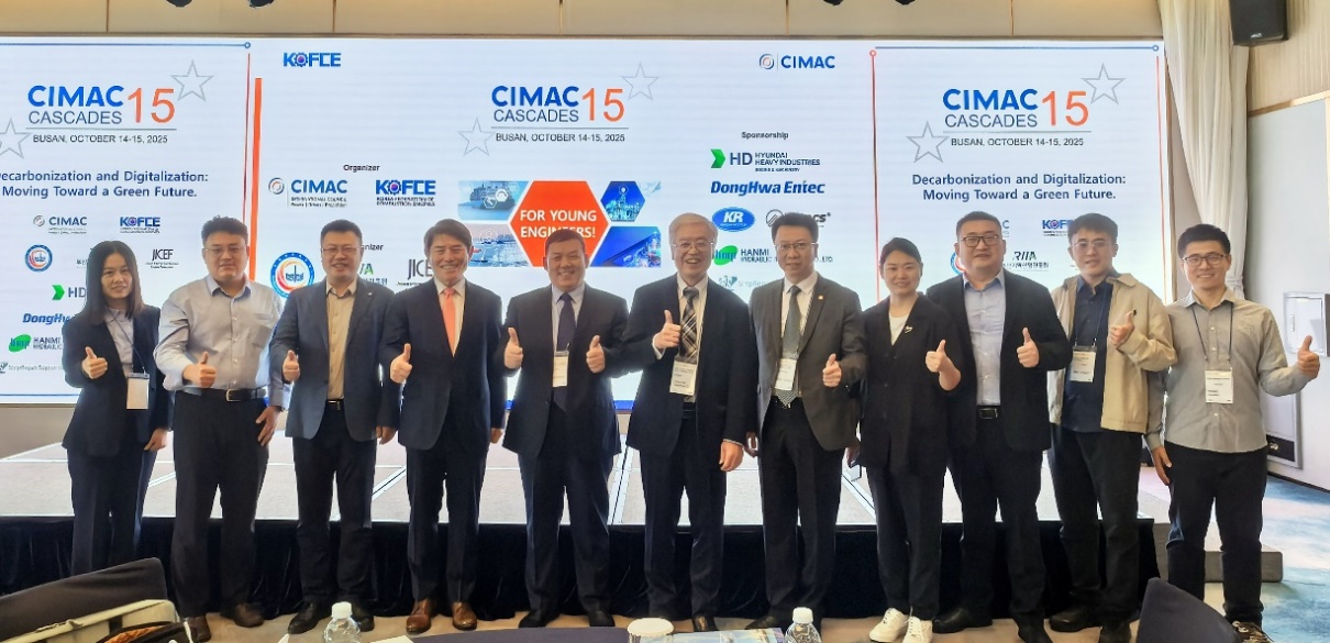 本届论坛由国际内燃机协会(CIMAC)与韩国内燃机联合会(KOFCE)联合主办,以“Decarbonization and Digitalization: Moving Toward a Green Future”(脱碳与数字化:迈向绿色未来)为核心主题,为全球工程师和内燃机专家搭建技术交流与合作平台。中国来自船舶集团有限公司第七一一研究所、北京理工大学和哈尔滨工程大学等11名专家和学者参与了本次会议。