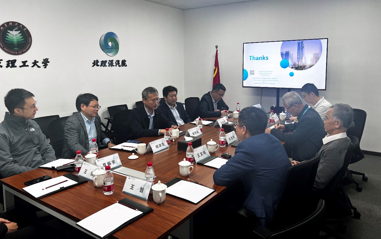在北京理工大学深圳汽车研究院,学院一行拜访了孙逢春院士。深汽院常务副院长王文伟介绍了研究院建设进展情况。