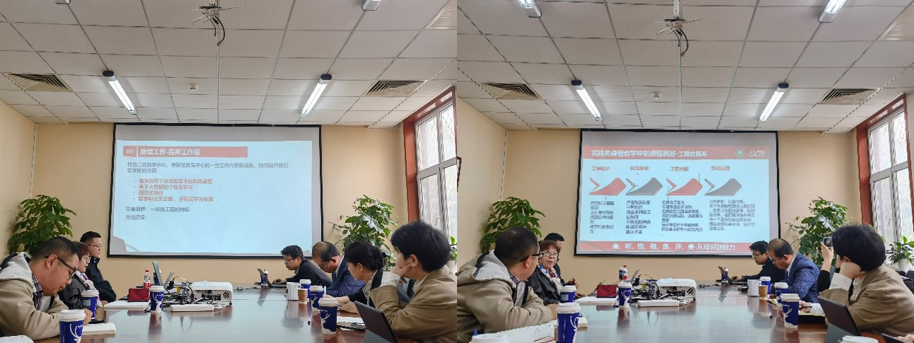 薛庆教授结合学校教师发展中心的“教师全生涯职业能力培育体系”师资培养理念,与名师工作室青年教师分享了职业拓展学习资源,结合学校在教学育人上的新格局、新目标,探讨了在教学设计、教育创新上的新理念与新方法,勉励大家要为师有爱、施教有法、育人以理。